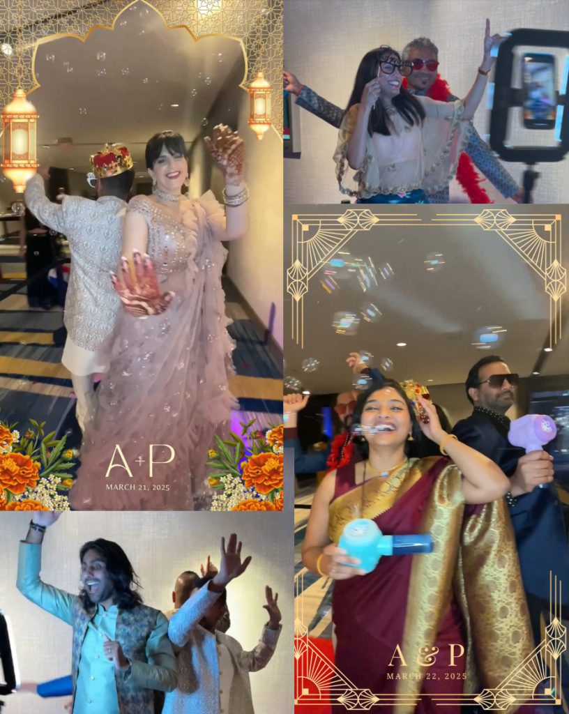Fun accessories like hand-held props, bubble guns, boas, glasses, etc. to enhance your videos and add a playful touch to your experience